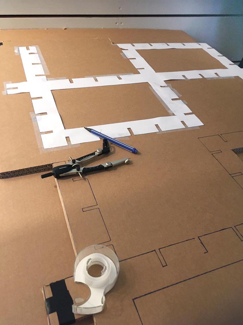 Repérer et réparer la ville. L'enjeu de cette intervention tourne autour d'une ré-interprétation de l'espace urbain à l'intérieur de la galerie du lycée, en tant que lieu possible d'une intervention.