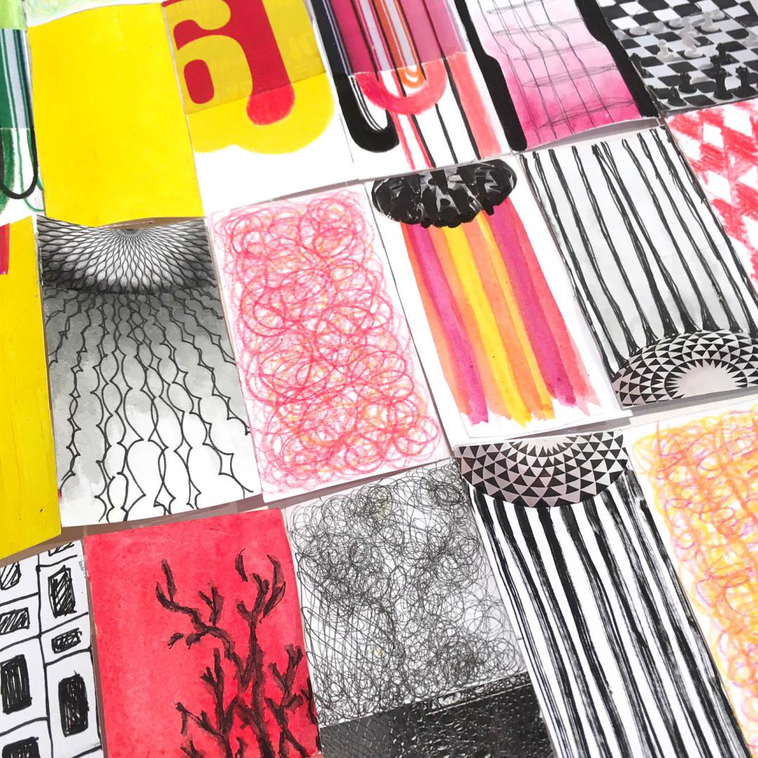 Travail de rythmes et de surfaces. Articulations des productions entre elles.