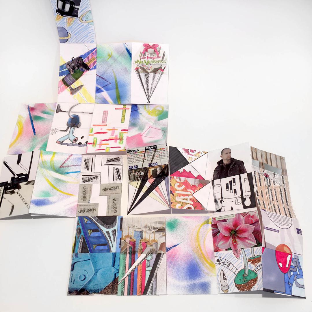 Exploration fonds et motifs, déclinaisons sous la forme d'un dépliant expérimental.