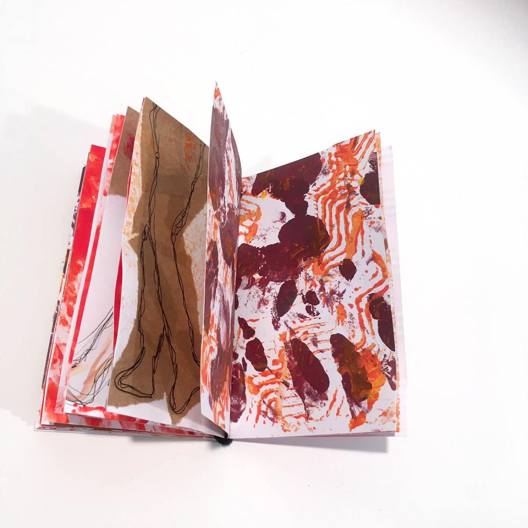 Assemblage sous forme de carnet : plier, agrafer piquer à cheval, massicoter.