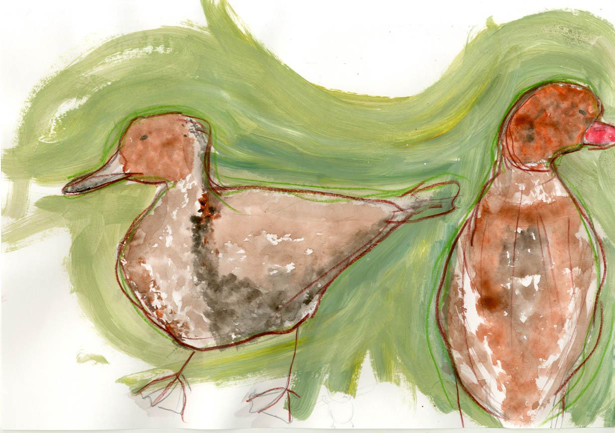 Dessin d'observation, aquarelle et peinture en prenant en compte les principes de plein/vide, forme/contreforme.