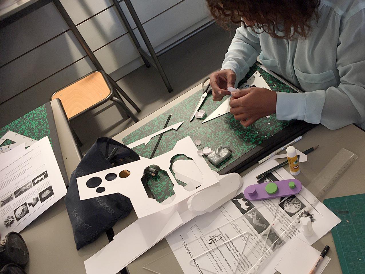 Le sténopé : découverte formelle à travers divers matériaux, terre, mousse, métal, permettant la reproduction du modèle. Assemblage de l'original imprimé en 3D au sein de l'établissement.