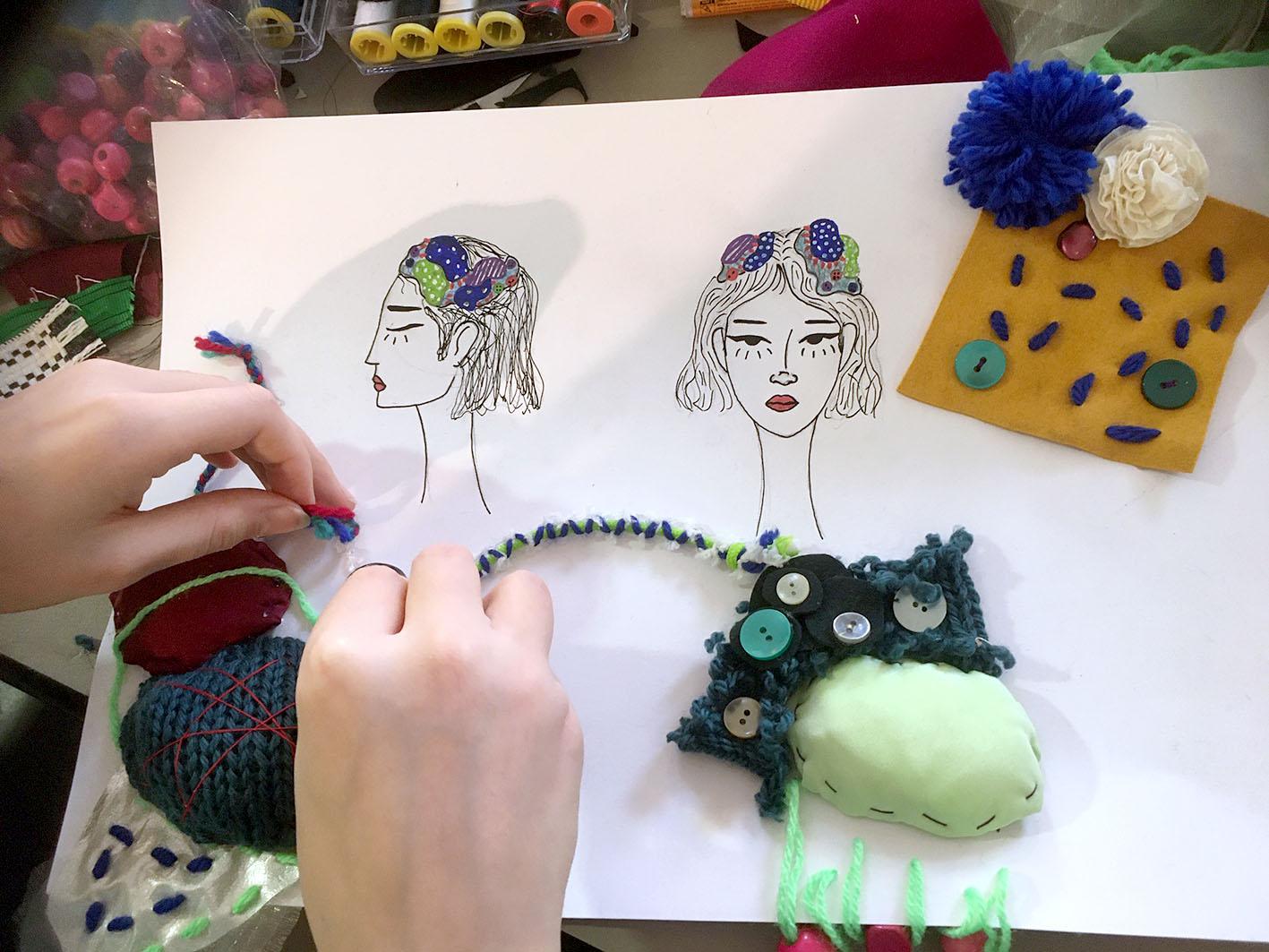 Marion Clément, styliste et modiste animait un atelier de 3 jours. Arrivant directement du défilé de Jean-Paul Gautier où elle présentait des créations, elle prenait en main les élèves pour les amener par le biais d'expériences à l'élaboration d'un bibi très personnel.