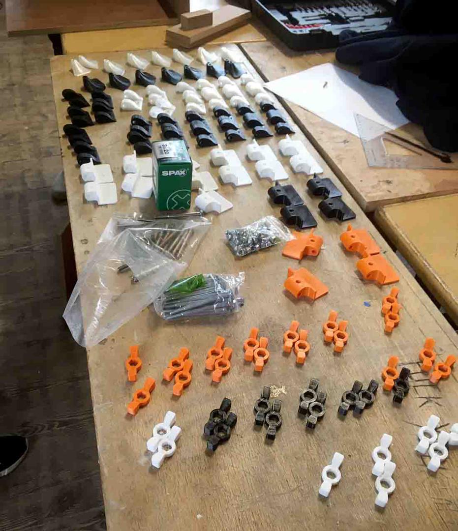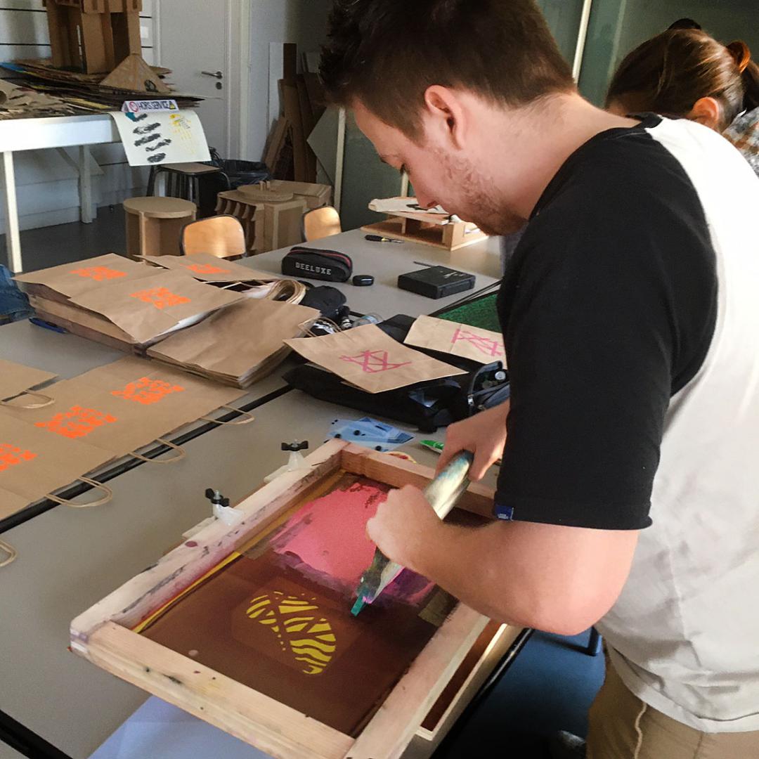 Avant de réaliser leurs premiers tirages en sérigraphie, les étudiants fabriquent leur propre kit en atelier. Les pièces nécessaires sont fabriquées en 3D dans l'établissement. C'est l'occasion de s'initier au matériel.